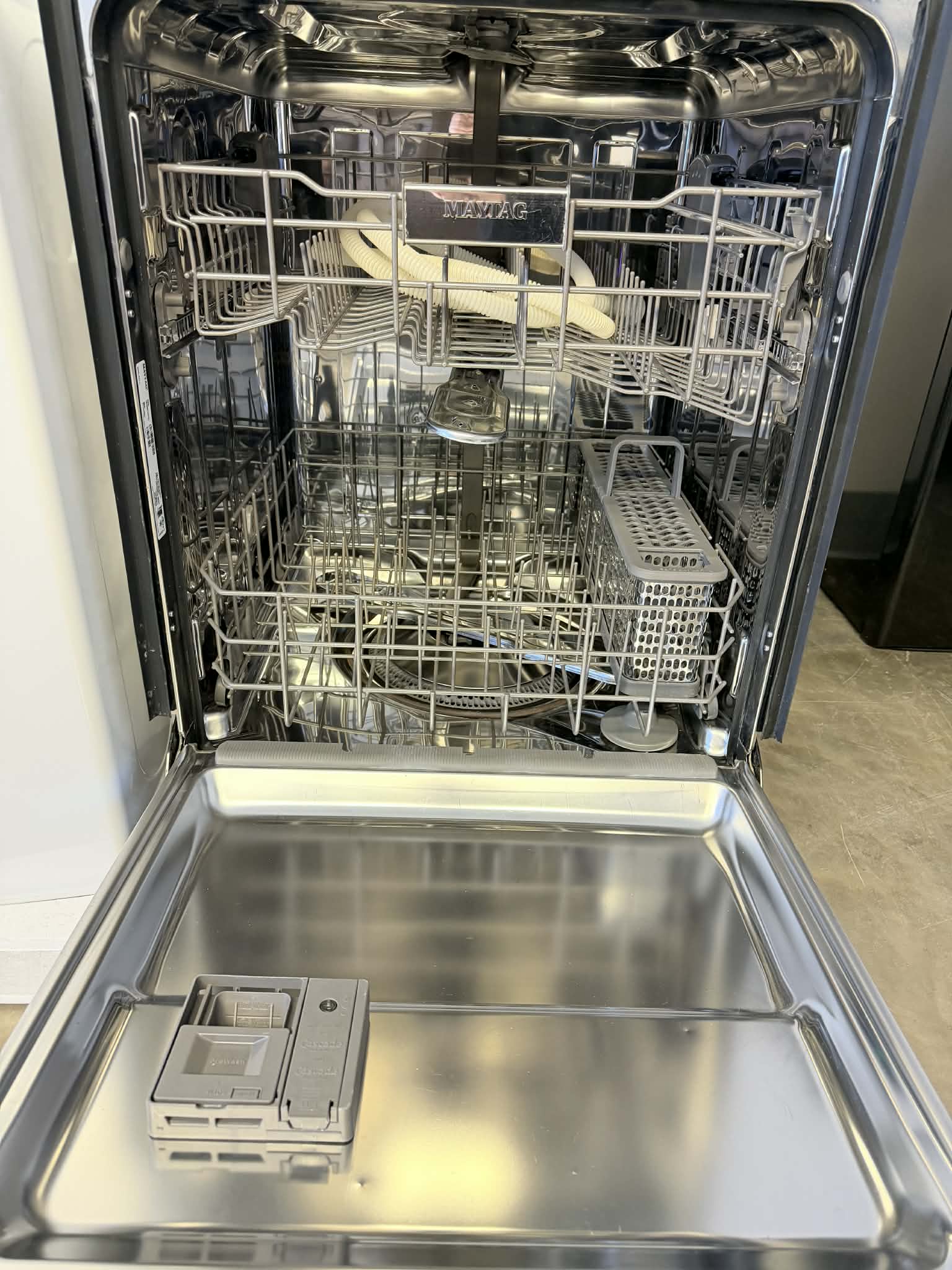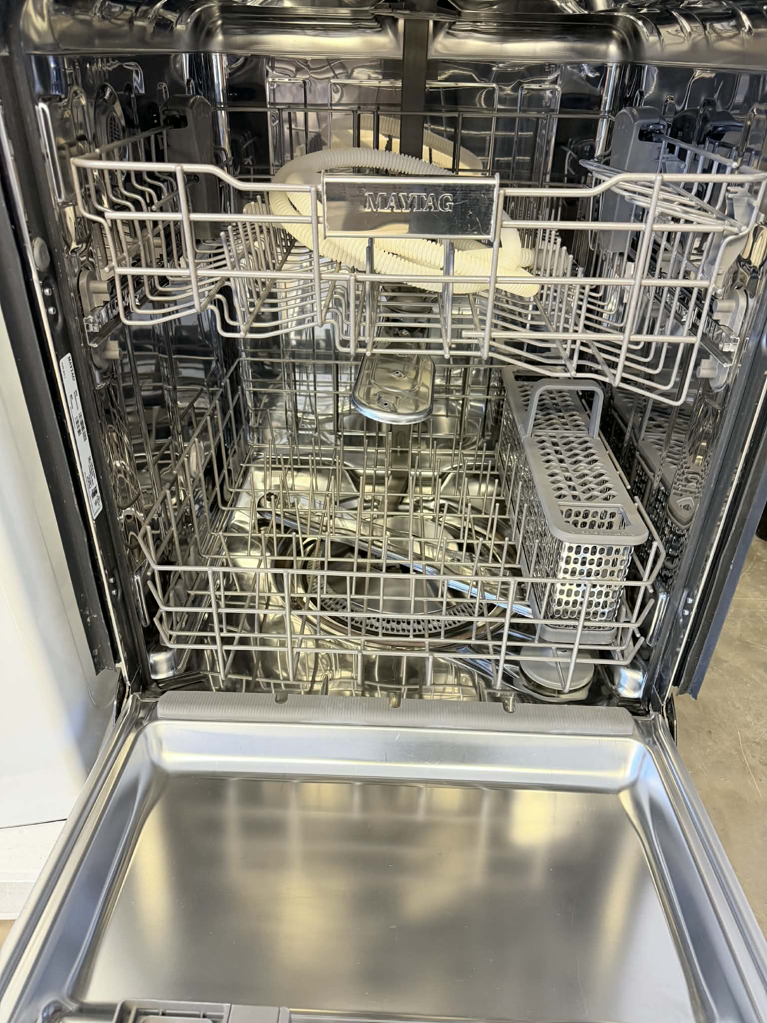 Maytag Dishwasher, 24 inch Exterior Width, 47 dB Decibel Level, Fully Integrated, Stainless Steel (Interior), 5 Wash Cycles, 14 Capacity (Place Settings), Hard Food Disposal, Fingerprint Resistant Stainless Steel colour